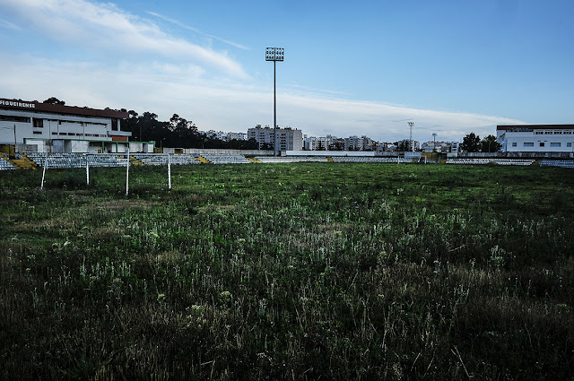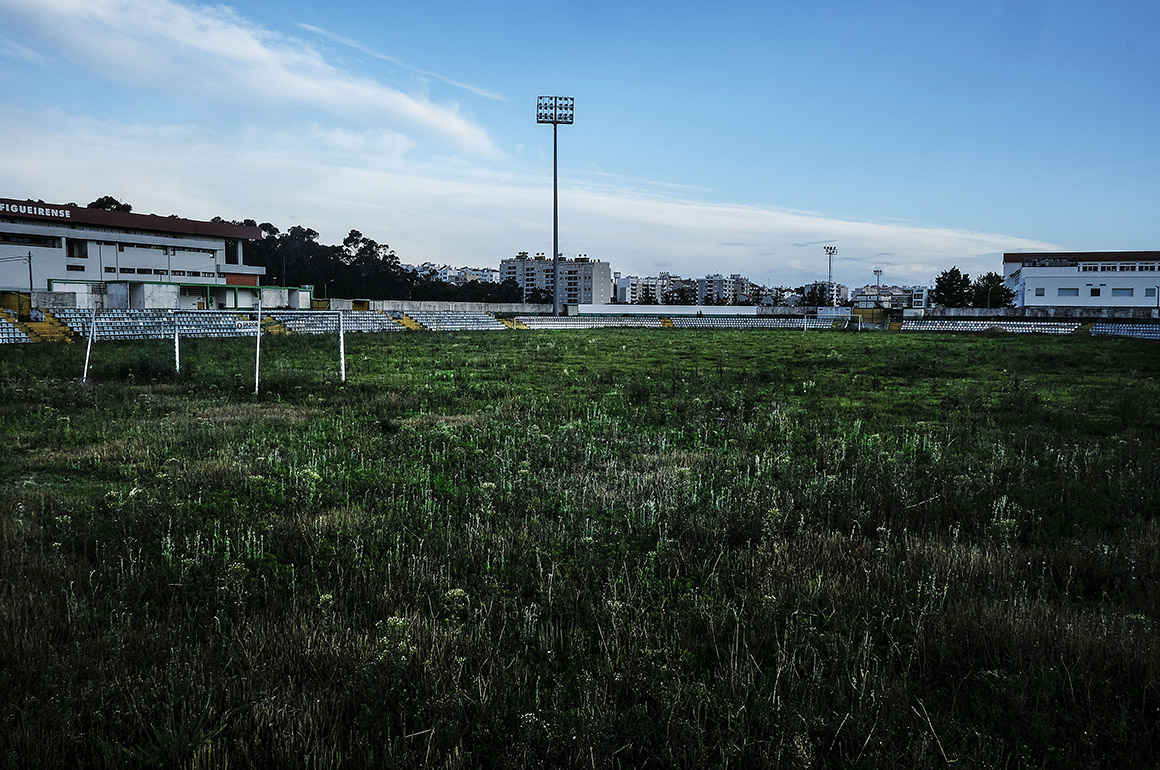 O estádio municipal transporta-nos para um cenário de guerra. O relvado com quase 40 anos assumiu uma existência errante, selvagem, alvo fácil de chacota nas redes sociais, acossado por drones e câmaras indiscretas que captam imagens degradantes. A vegetação apoderou-se do recinto que, não há muito tempo, acolhia 9000 adeptos. As bancadas amovíveis apodreceram, o ferro e as cadeiras foram reconvertidos em trocos que nem para comprar bolas chegam. Os torniquetes aguardam estoicamente, já sem a companhia dos eucaliptos entretanto expulsos. As torres de iluminação repousam sobre poços de água. E, mesmo sem utilização, obrigam a Naval a pagar uma taxa de 2000 euros mensais. Qualquer incumprimento leva ao corte de energia, o que não seria inédito. Aconteceu, aliás, na véspera do último Natal, deixando os jogadores “residentes” da formação sem electricidade durante nada menos do que uma semana.